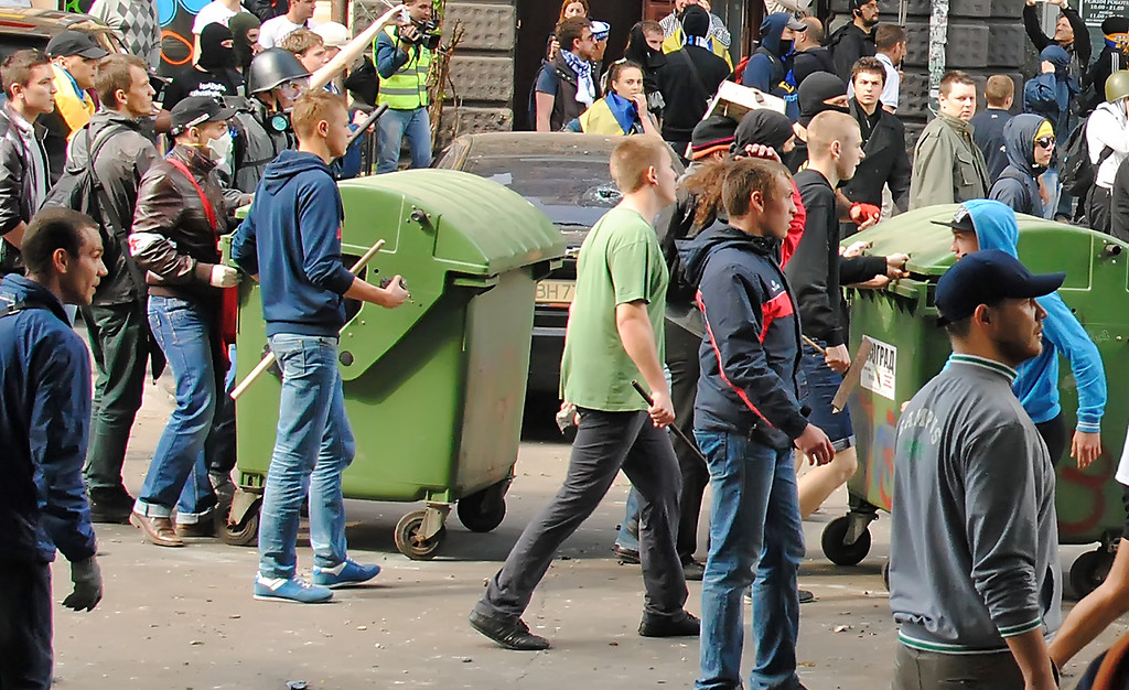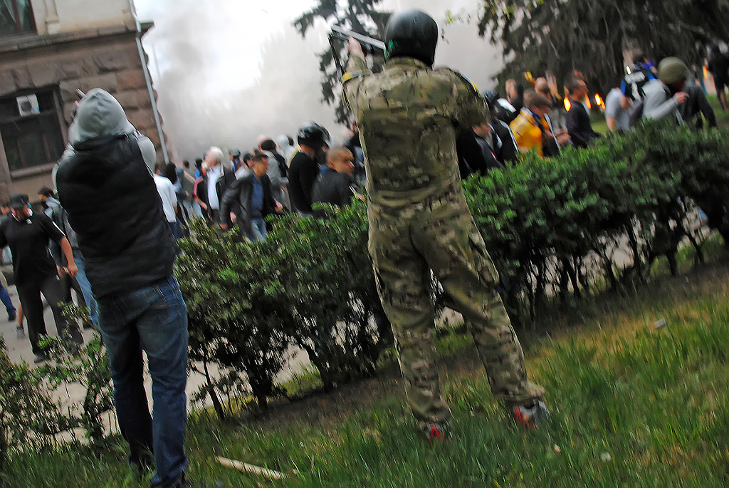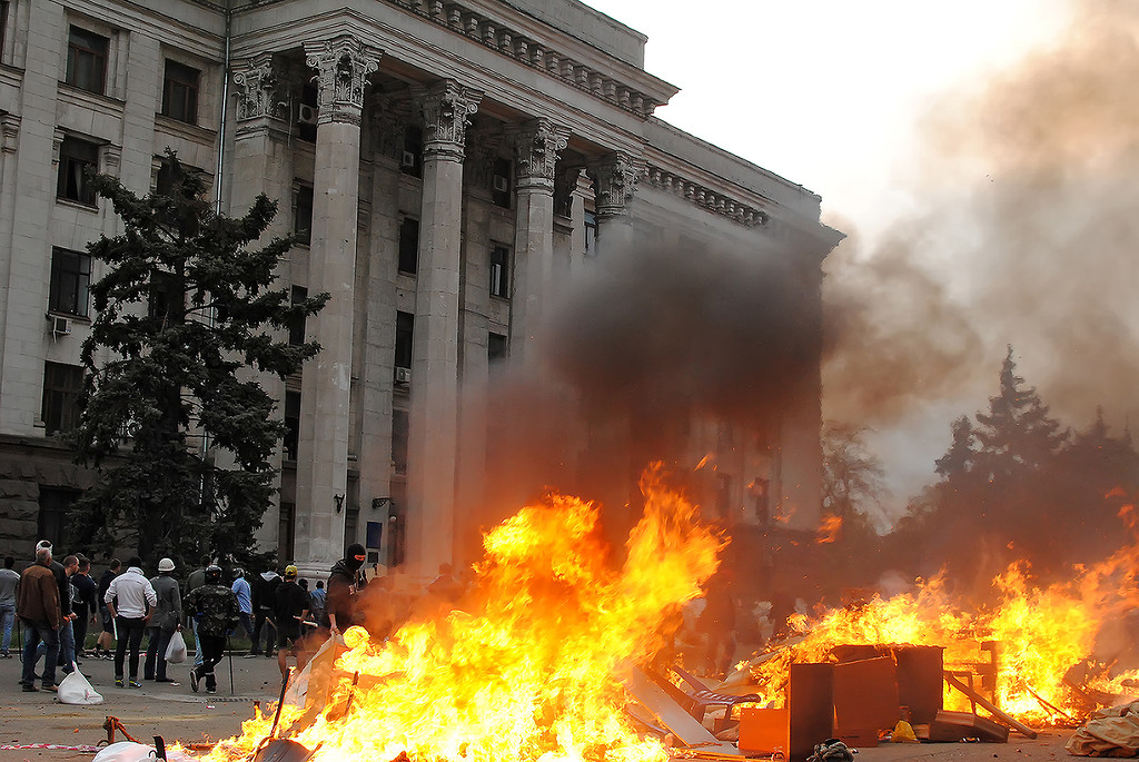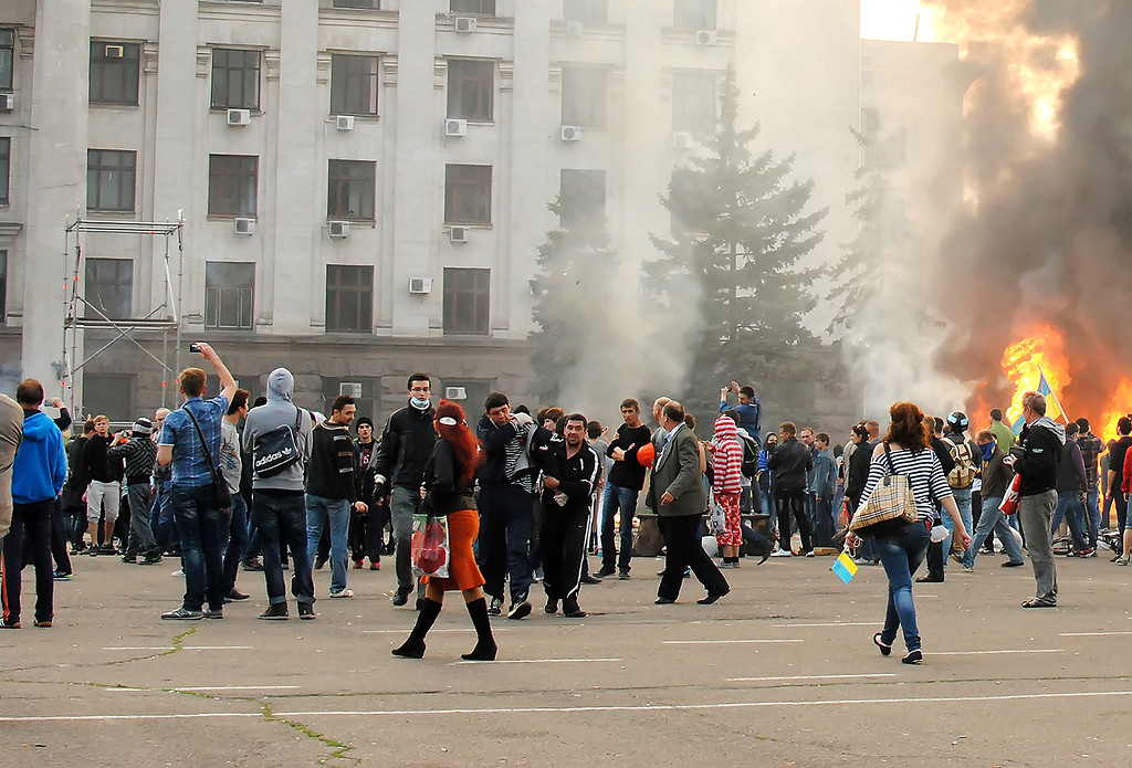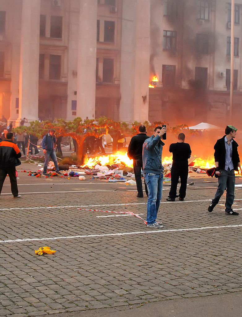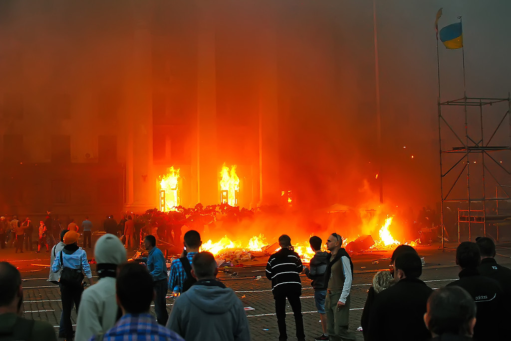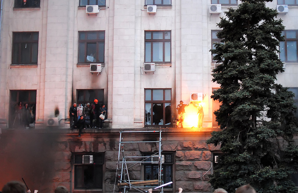 | Woman “rescued” from House of Trade Unions, hit with first of two Molotov cocktails. See below… |